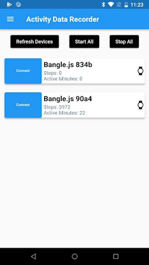 With this app it is possible to control the BangleJs. You can start and stop recording of activity data, as well as send the data to a previously configured server. To be able to use the app, it is urgent that our operating system "Activate" version => 7.1 is installed on the BangleJs. Downloadable from here: https://kristofvl.github.io/BangleApps/.