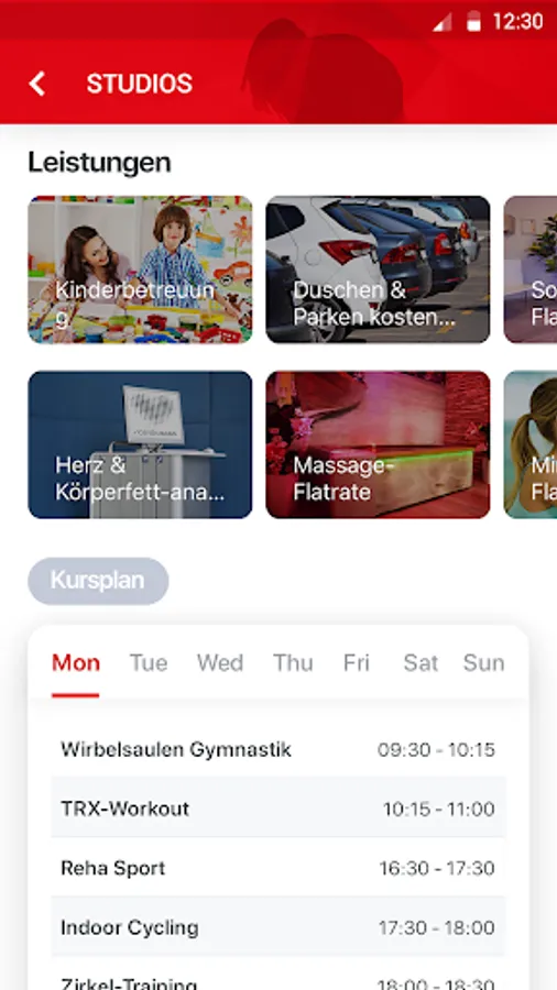 • Each studio with its own profile: own media gallery, address, opening hours, • • performance overview, course plans and course details