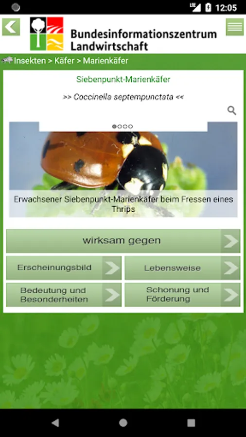 The app helps to identify the key beneficial insects in the garden and shows how it can be encouraged. Garden owners know against which pests a Nützling acts, how he lives, what he's seen and the circumstances under which he feels particularly comfortable. A simple identification key helps to identify which animal has the right to. In a hurry, there is also a clear photo search with different groups of animals. Of course you can also search for the name of the beneficial species. Is it a pest, called the App beneficial organisms that help against him.