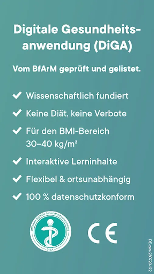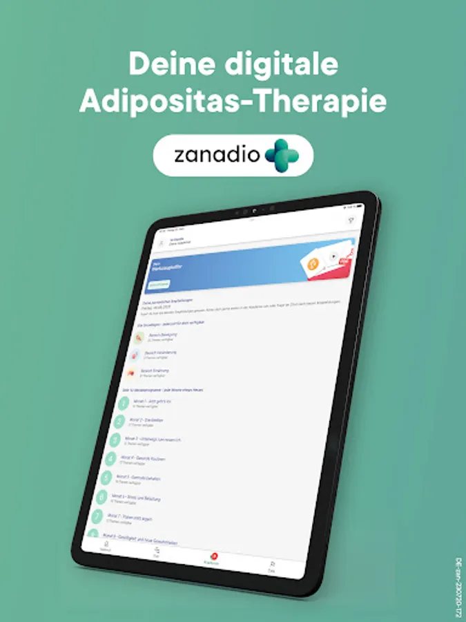 zanadio is more than a weight loss app and, as an "app on prescription" (digital health application), supports the treatment of obesity. The program is scientifically based and is prescribed by prescription. zanadio is suitable for patients with a BMI of 30-40, who are at least 18 years old and who have no contraindications (e.g. bariatric surgery within the last 3 years, pregnancy) or who have been clarified by a doctor. You can find more information about whether zanadio is suitable for you at: zanadio.de. The application does not rely on short-term waivers or bans and is therefore not a classic “diet app”, but uses the long-term effects of a change in behavior and can do more than just count calories. zanadio is a digital "health coach" that supports you in reducing your weight in the long term and permanently with new and healthy habits. The zanadio app can be used by users free of charge after activation with a prescription code.