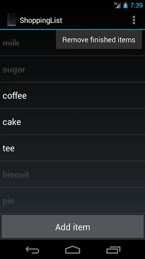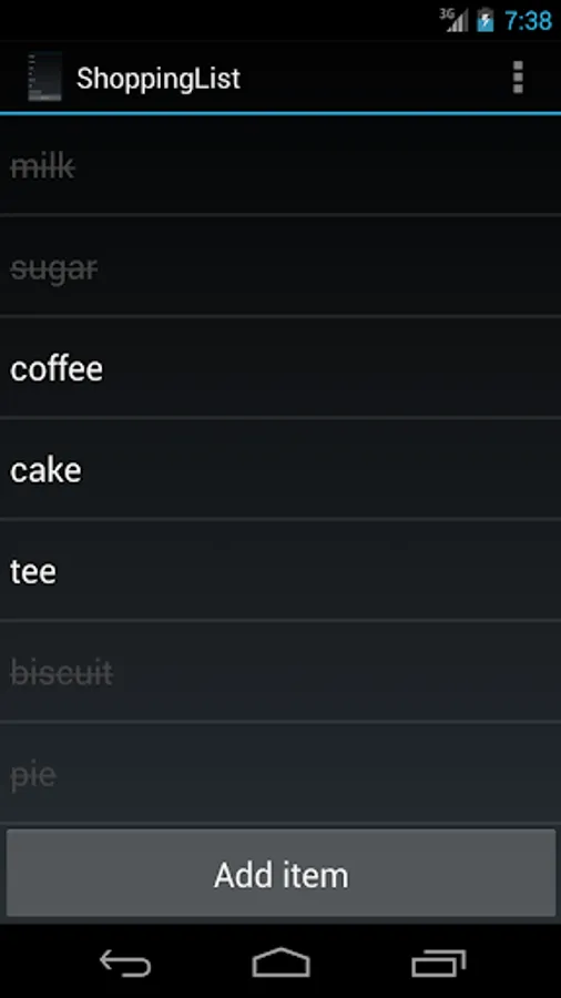 Tap on an item to cross it out. Tap again on it to toggle its state.