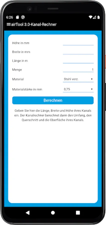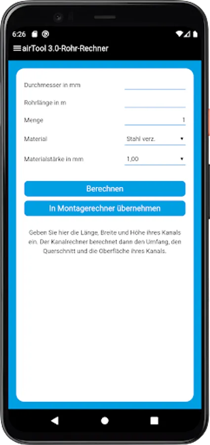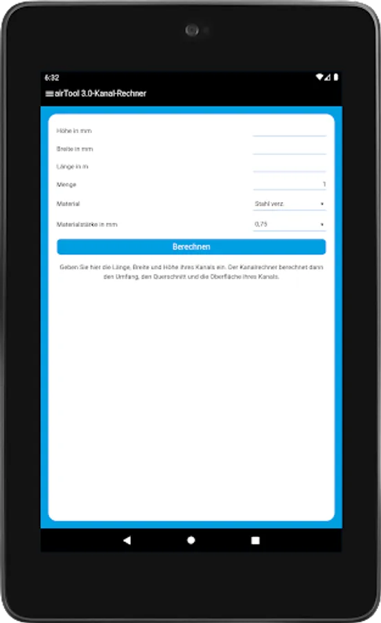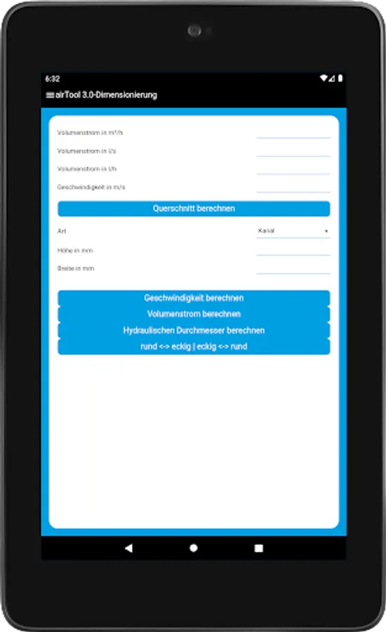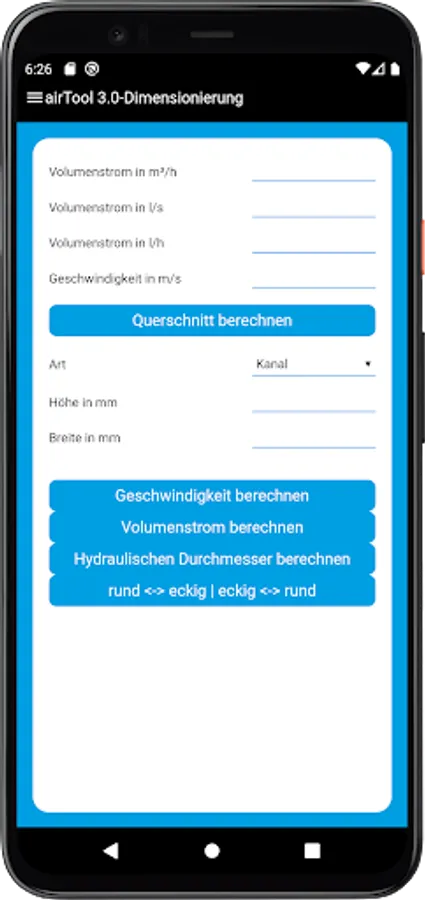 Anyone who is already familiar with channel slide rule will notice a reduction in workload with this app. Calculation of volume flow, speed or cross-section of an air line as well as the calculation of the hydraulic diameter.