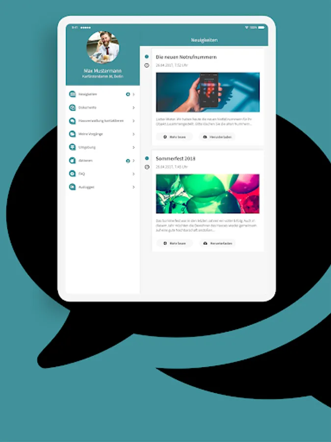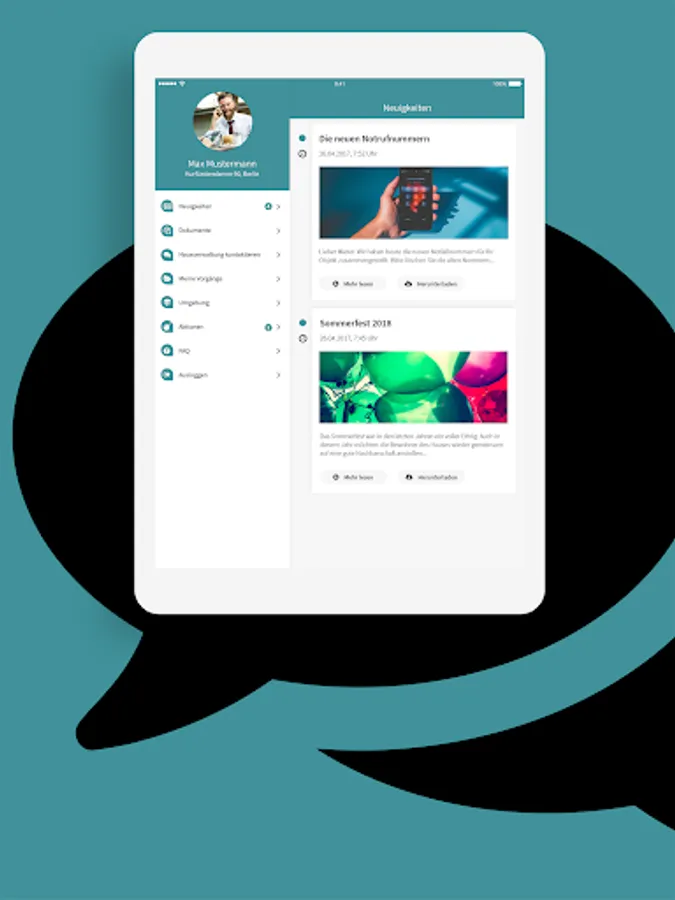 Our app informs you about news about your house. In addition, you can tell us your concerns and damages and follow the processing status.