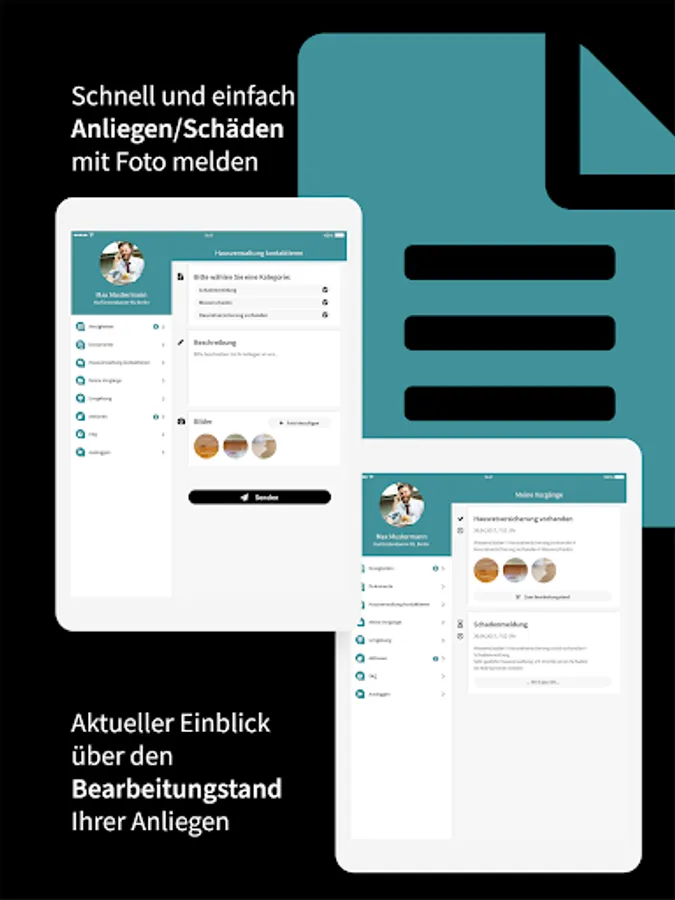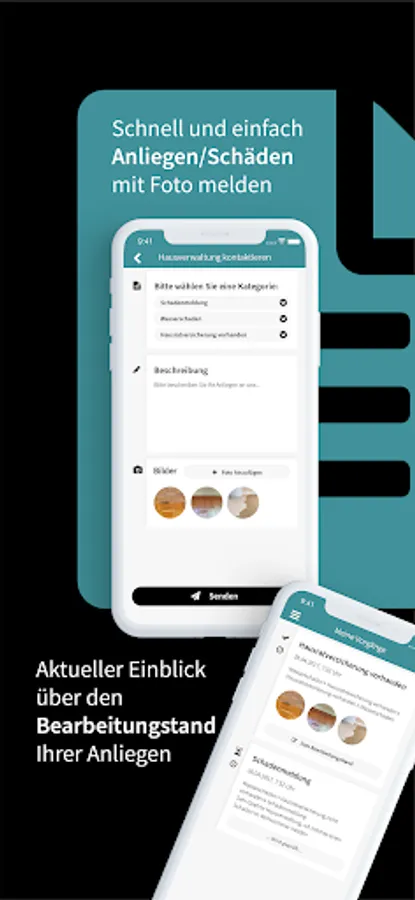 As a tenant or owner, you can report damage or concerns directly with photos via our app. Your inquiries are then available to our employees and can also be forwarded to craft businesses.
