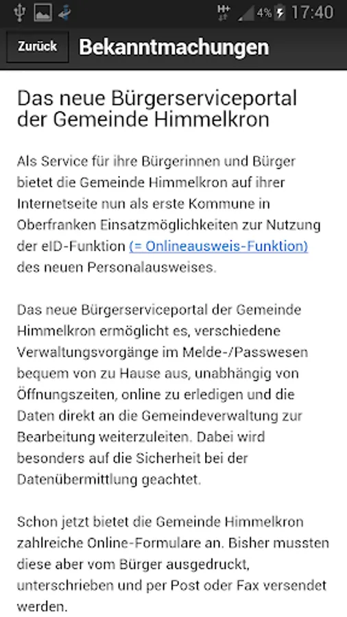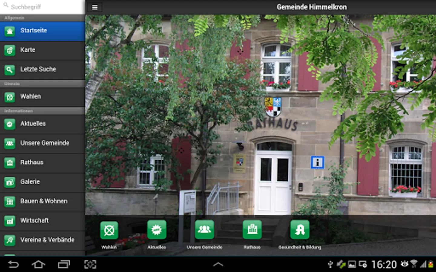 The Civil Service App (BSA) of Himmelkron provides information for residents and visitors to the municipality. This app provides a quick, easy operation and intuitive navigation.