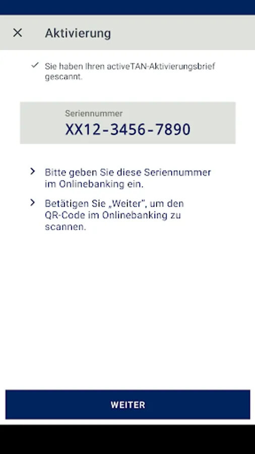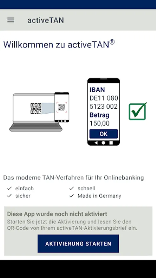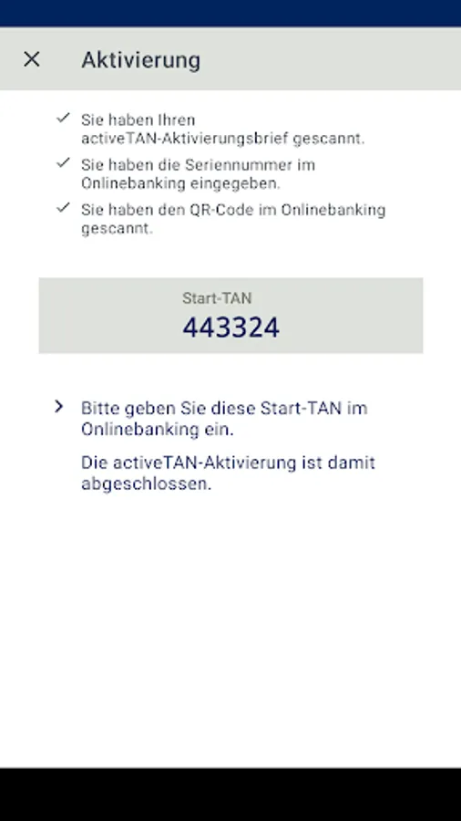 To activate the akf activeTAN procedure for your personal online banking access, you need an activation letter in addition to this app. You can request the akf activeTAN activation letter at any time in online banking under the menu item "activeTAN administration".