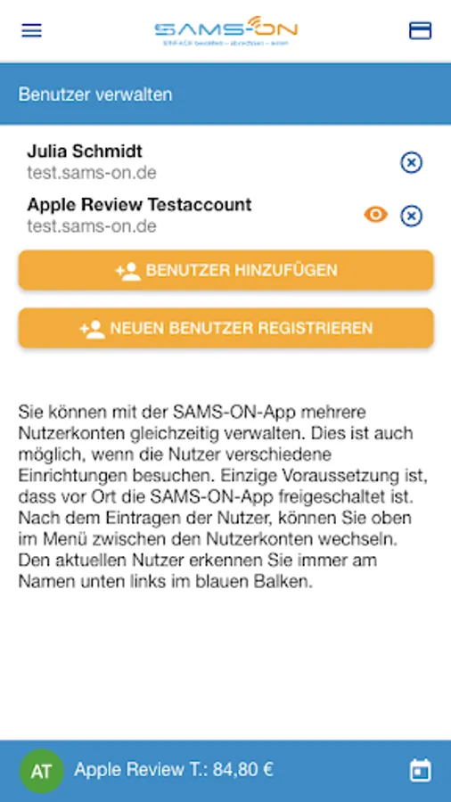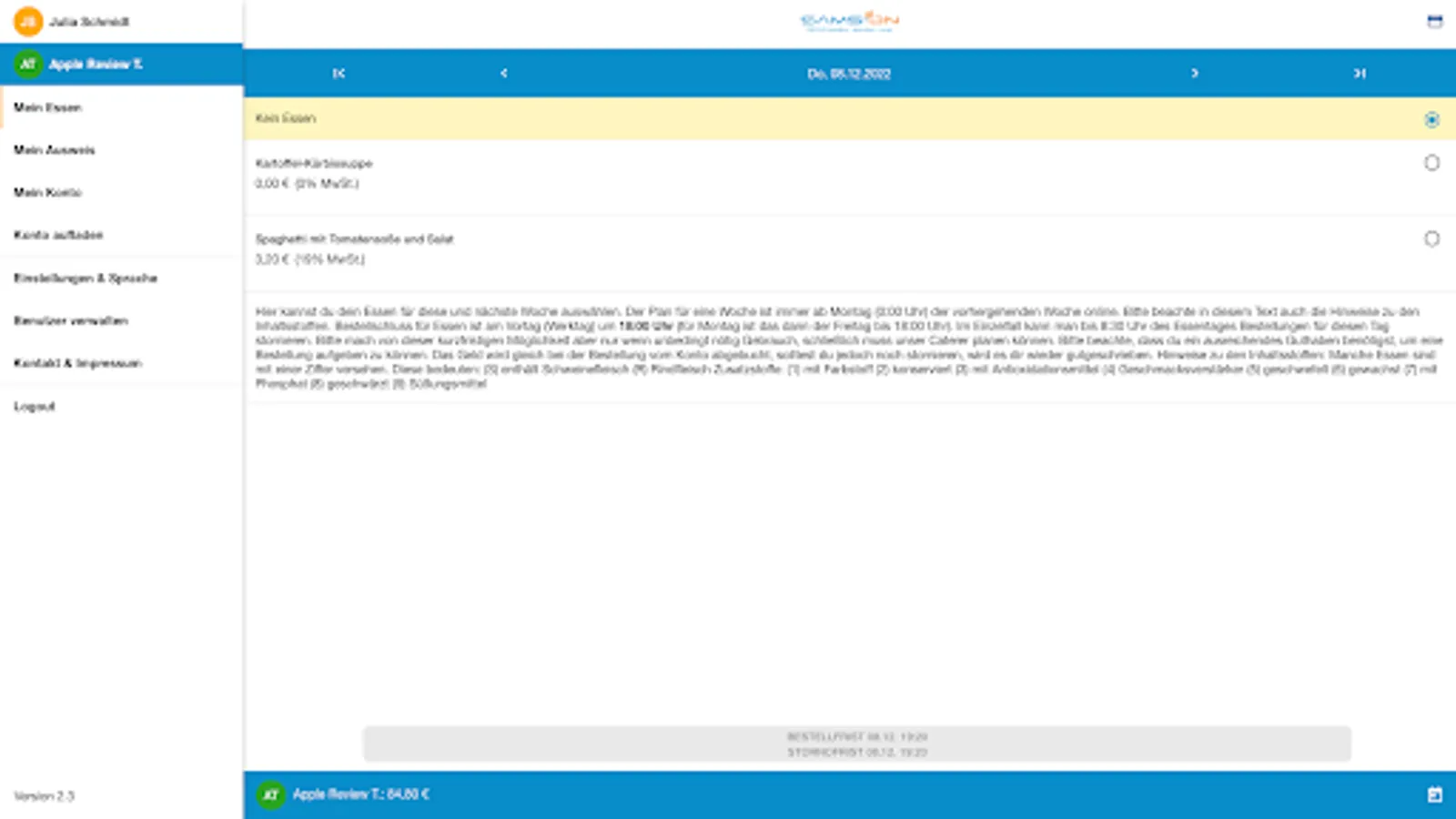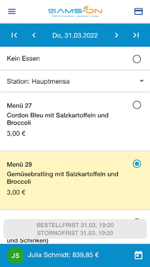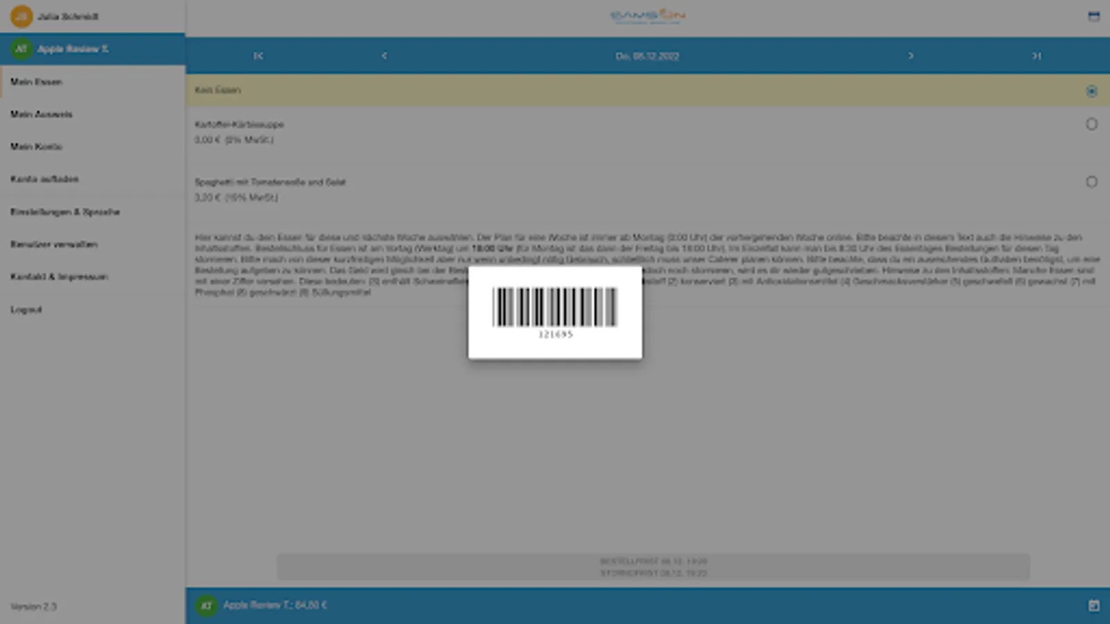 Is "SAMS-ON" used for user administration in your on-site canteen or canteen? Then you can now conveniently access your user account via the app: view the plan, order food, access your account, manage your ID card: all of these functions are now also available to you on your smartphone and tablet.