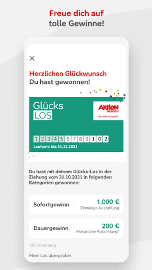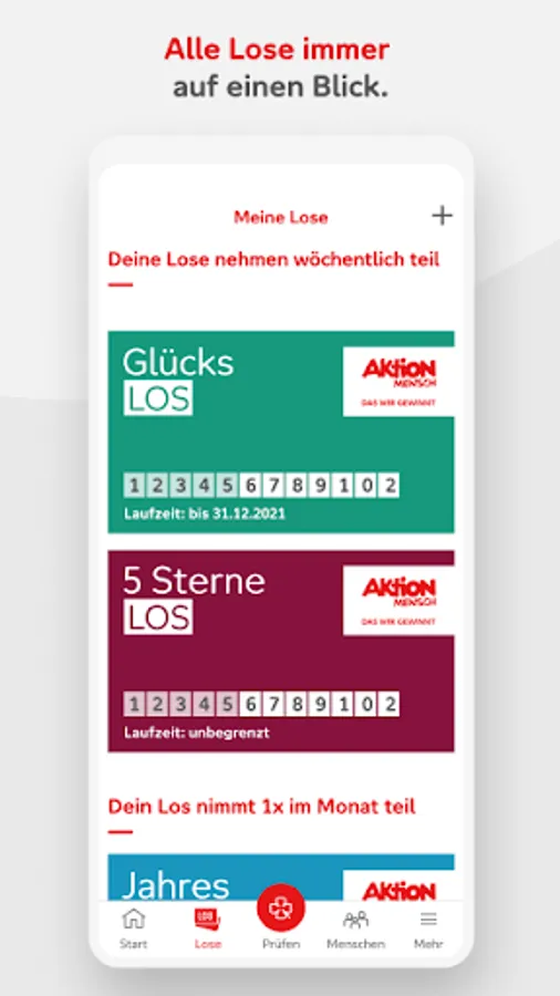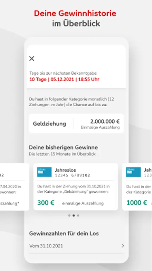 - 🍀 All information about your tickets at a glance: Your ticket numbers, chances of winning, the date of the next raffle and an overview of your previous winnings.
