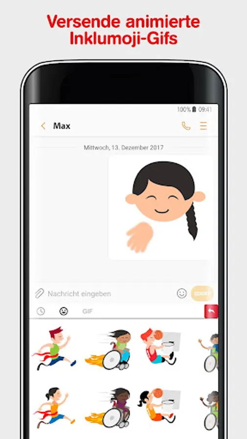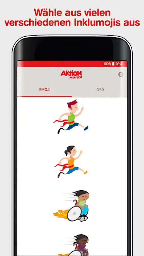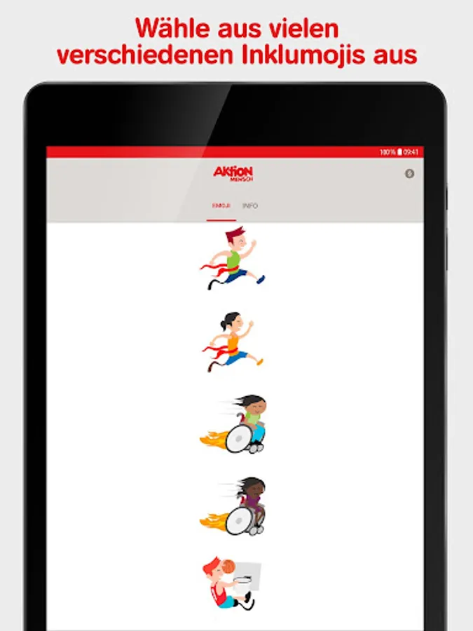 This app provides 27 emojis - small pictorial symbols - that you can use in messenger apps and chats. What's special about them? Our emojis are inclusive! This makes Inklumoji the first app that also provides emojis with disabilities. Just activate the keyboard, select the right emoji and send it as a picture. Your friends will love it! Please note: The animated emojis (gifs) cannot be used in all messenger apps.