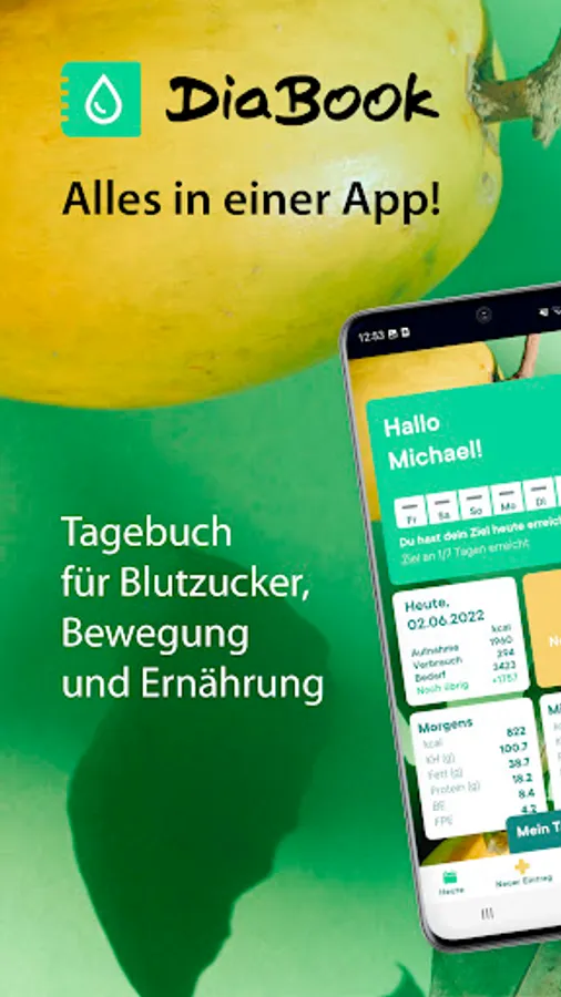 Living well with diabetes! DiaBook is a free app that allows you to easily document your lifestyle. It combines blood sugar, nutrition and exercise diary in just one app!