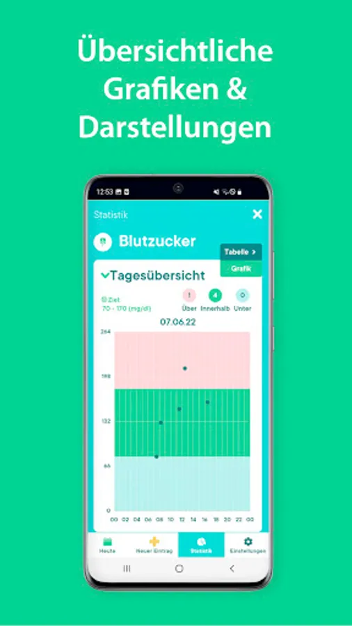 Statistics: All values are prepared for you in DiaBook in tabular or graphic form. You can email them directly from the app as a PDF file.