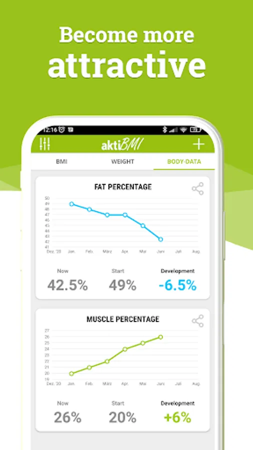 You want to successfully lose weight and evaluate the success of your diet? aktiBMI is the right choice for you to complement typical diets. In the body weight diary of the app you can observe whether you are on track to reach your desired weight. The app continuously encourages you to further improve your body. With aktiBMI, losing weight will turn out to be fun!