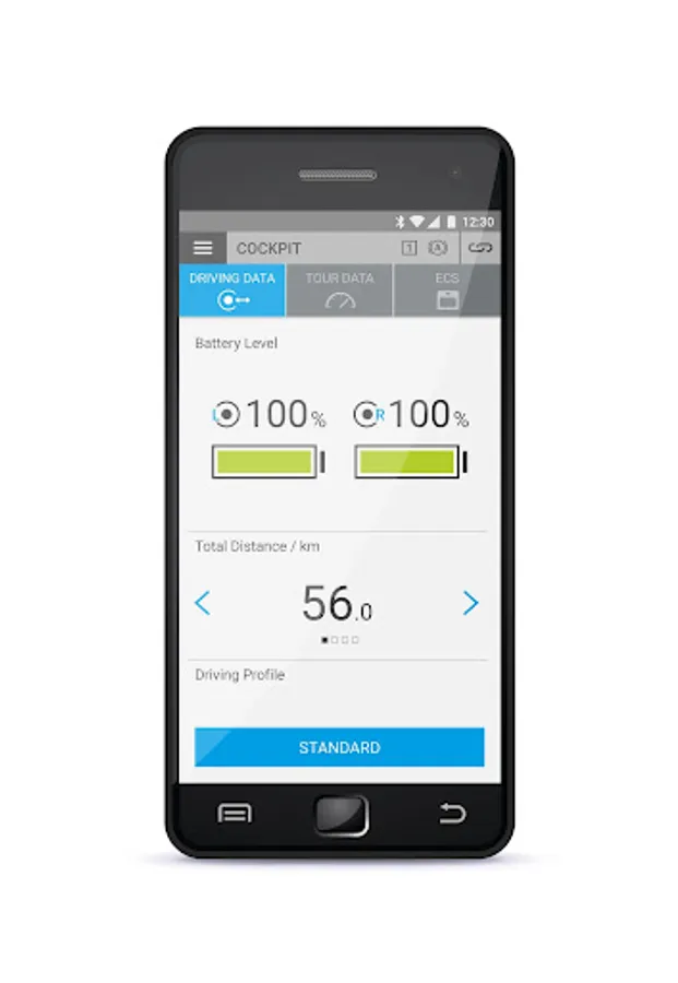 The free section provides you with four pre-set driving profiles that influence the driving behaviour of your e-motion. You can also display the current speed, mileage or charge level on your smartphone and even record and save tours via GPS.