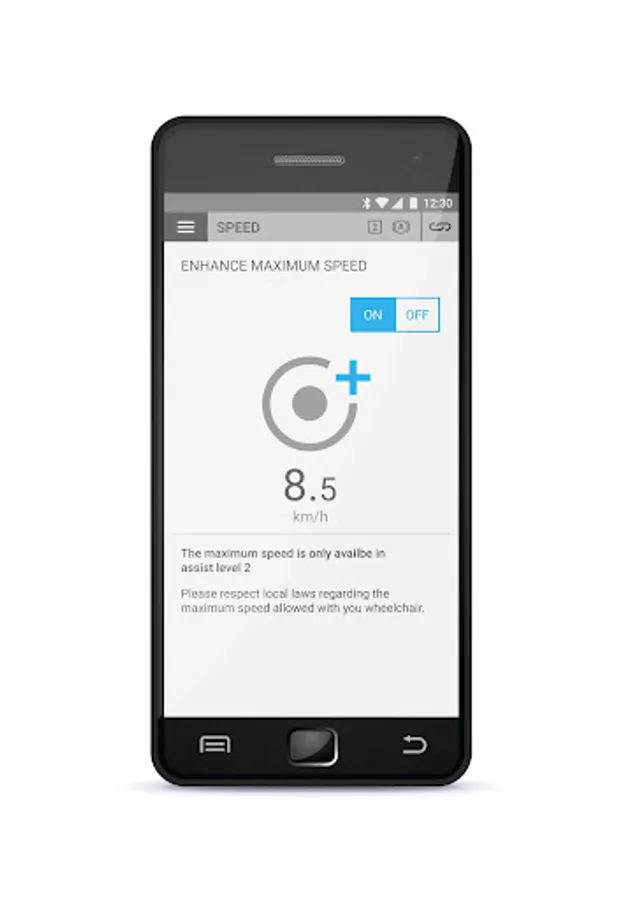 With the Mobility Plus Package you can increase the support speed from 6 km/h to 8,5 km/h and benefit from the Cruise Mode that allows you to keep a permanent speed with only one deflection on the push rim.