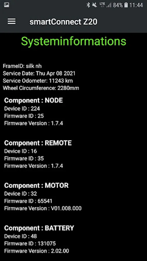 number of your e-bike, date or km until the next service and the current firmware version of each