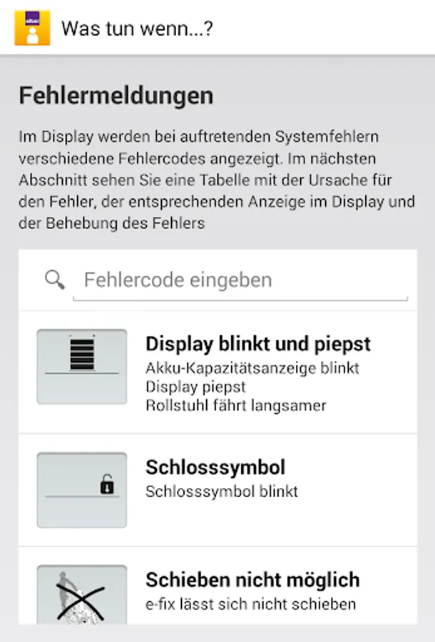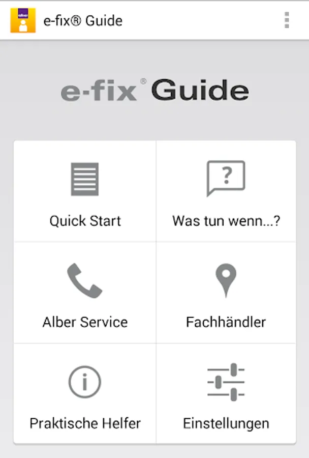 It supports e-fix driver with valuable tips and tricks for everyday life with your Alber product. In the event of a breakdown you identify using the app the error and correct it in many cases. Should this not be possible to take directly from the app on contact with the Alber Service Centre or your specialist dealer. So you always get quick assistance, right on your smartphone.