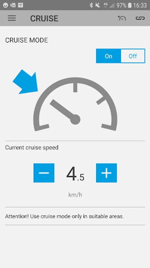 - By means of Cruise Mode l you can drive motorized without having to use the pushrims permanently (comparable to the cruise control in car)