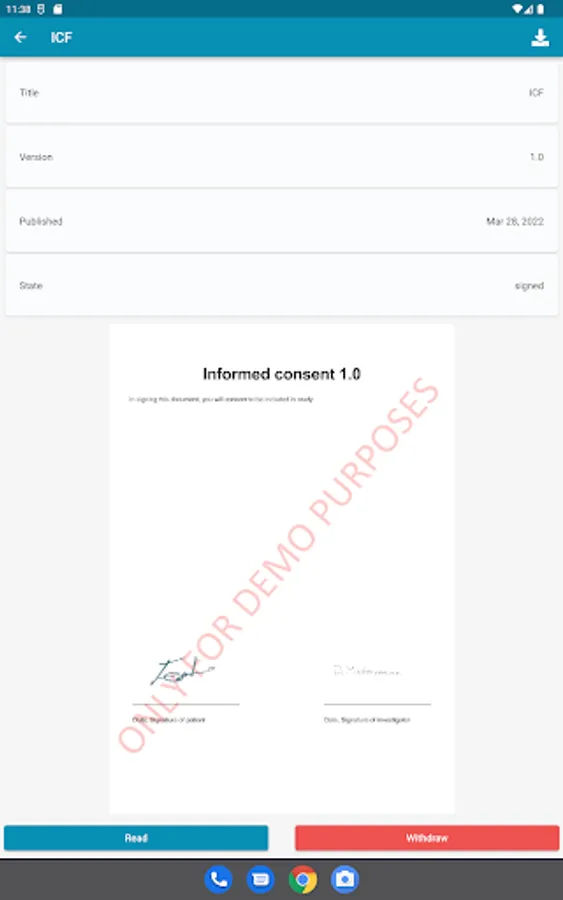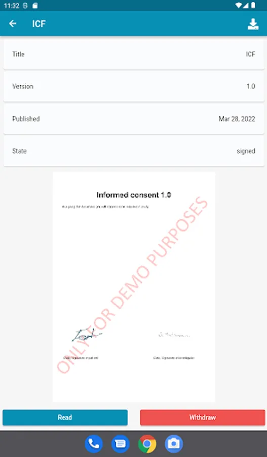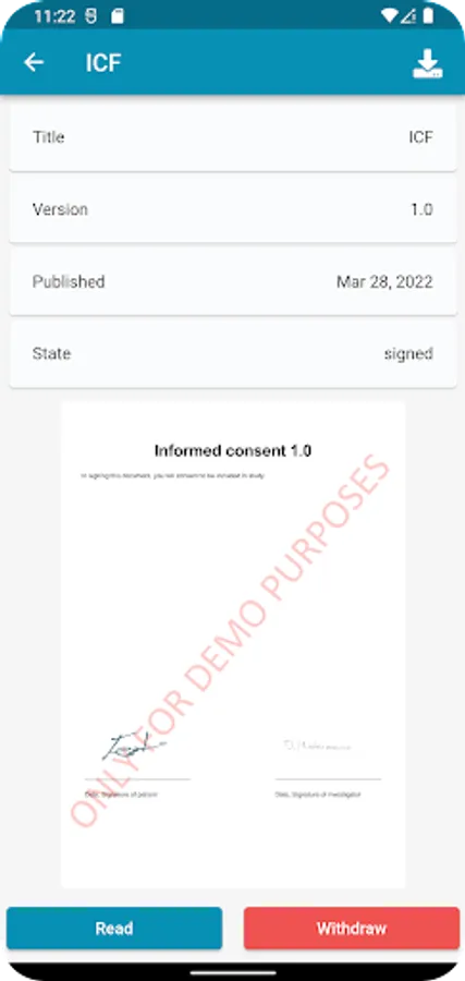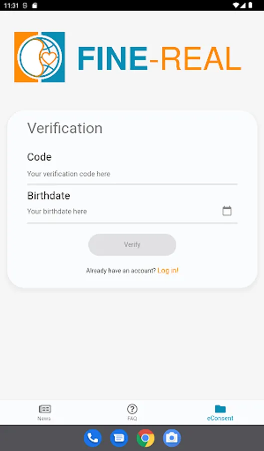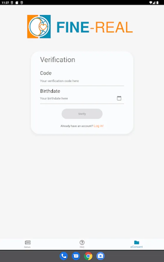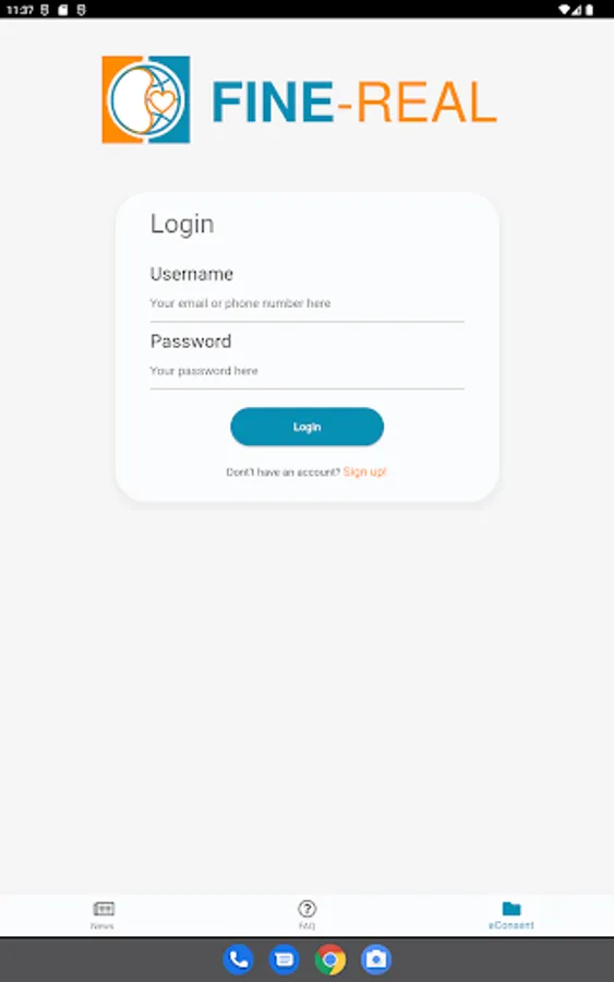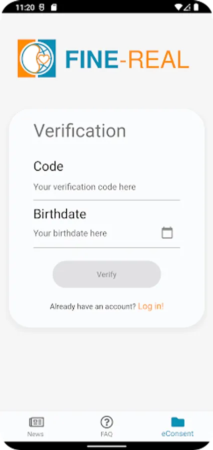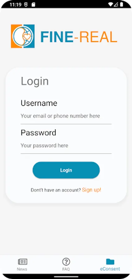 The FINE-REAL eConsent app of Alcedis GmbH is used to view and sign consent forms for the Bayer AG sponsored non-interventional trial FINE-REAL. To make an informed decision about whether to participate or not in this trial, people need to be informed various aspects. This information is provided to potential participants through the informed consent process. The app is specifically intended to provide these consent forms/information and to digitally collect and transmit signatures of the participant and the physician which is required for participation in the study.