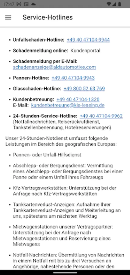 The already known functionalities remain of course, exist: The Service Partner can still be found the nearest service station in our network of repair shops, gas stations, Glasreparatur- and car rental partners, in addition, all service hotlines are stored in the app and you will receive important information about abroad, for the loss event and the individual full-service benefits.
