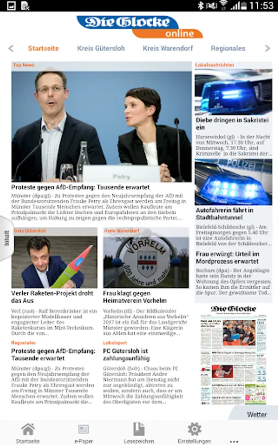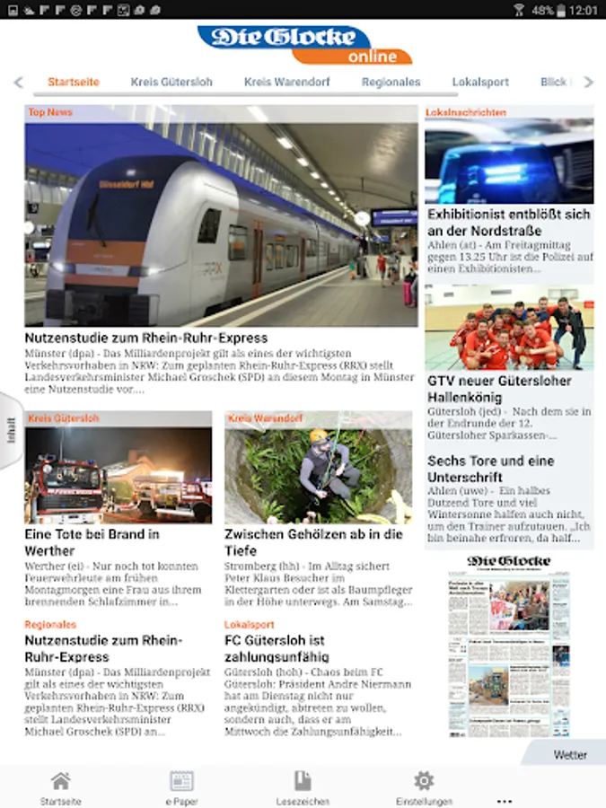 All local editions of your daily newspaper as e-paper, to current local and national news from around the world: That and more is offered by the app of your daily newspaper "The Bell". Available is the app for both tablets and smartphones.