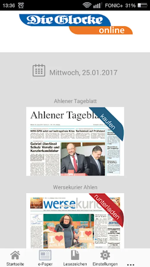 If you already have a digital or premium subscription to the "Bell" or "Ahlen Tageblatt", you can use the app at no additional cost. Log in with your e-paper credentials and call expenses and all content is free.