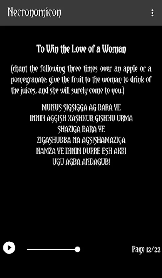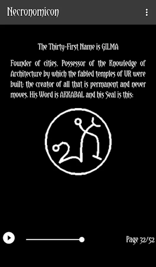 The Necronomicon is an ancient occult book written by the (insane) Arab Abdul Alhazred. The book has been translated over the centuries from the original language of Arabic into several others. In the present, there are only a few specimens that have survived the ravages of time and the active persecution and destruction of the church and government. They are extremely rare and are either under lock and key or private collectors. Until now, download the digital version of the Necronomicon on your phone!