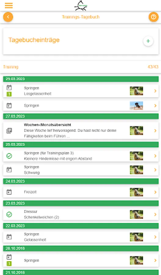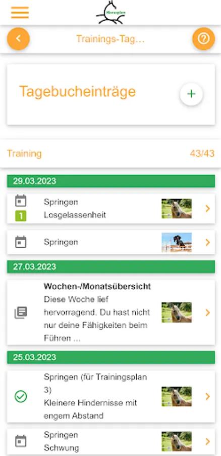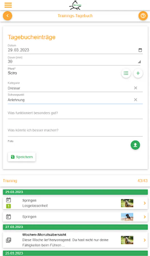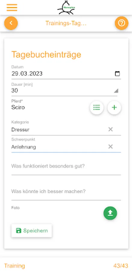 Keep a virtual diary of the training progress of you and your horse. Here you only need a few minutes a day, but you will notice the difference of a focused training immediately!