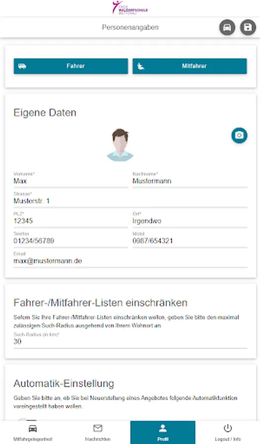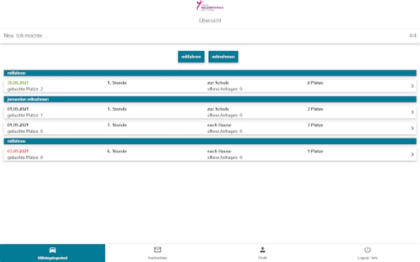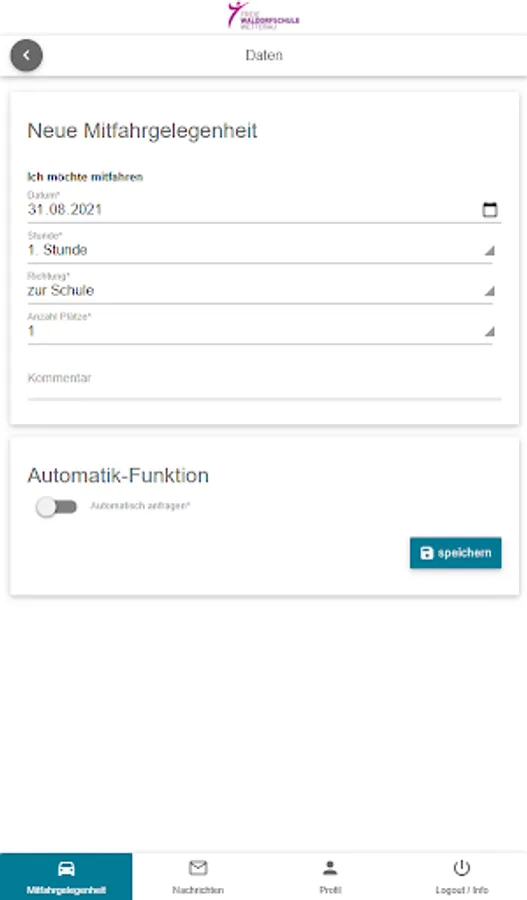 The FahrMitWaldorf app for the school community of Free Waldorf Schools connects people who have traveled the same way. Schoolchildren, teachers and parents can organize car pools here. Fast, flexible and uncomplicated. Either you offer free spaces in the car or you are looking for a ride. The app brings the two interested parties together and of course also checks whether the planned departure time is suitable for both of them. If the driver's or passenger's plans suddenly change, all participants in a booked trip are informed immediately.
