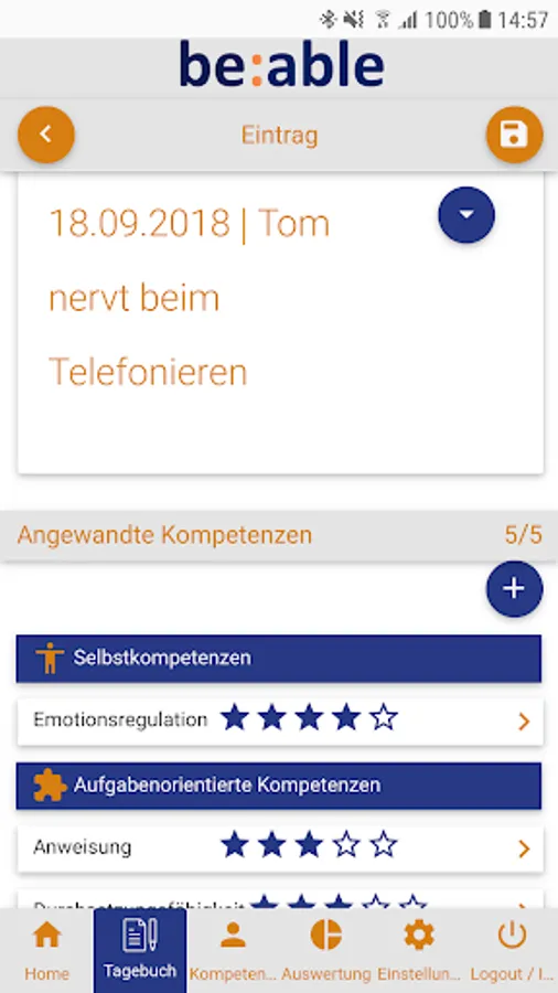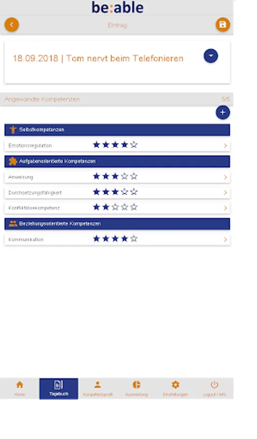 3. Assess each competence how well you succeed: e.g. Patience: 4 out of 5 stars
