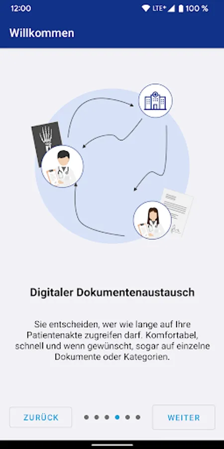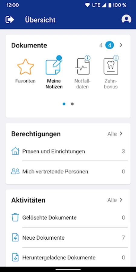 Should it be necessary, you can quickly provide your doctors with the most important documents. With just a few simple steps, you can make data on previous illnesses, allergies or prescribed medication accessible to doctors.
