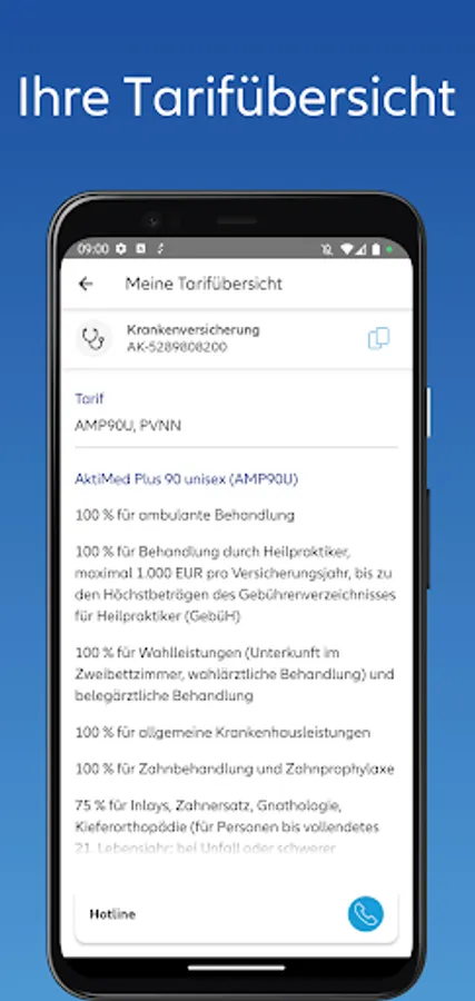• Tariff display: You can see at a glance which benefits and deductibles are insured in your tariff – and which are not.