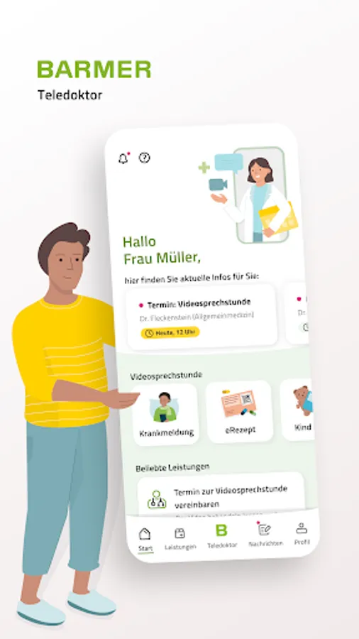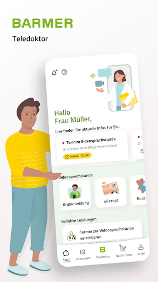 You need a BARMER user account to use the teledoctor app. You can set this up for your protected member area "My BARMER" at www.barmer.de/meine-barmer.