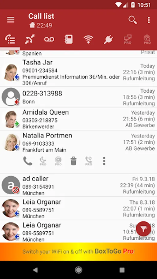 To be notified at new calls, voicemails and faxes, BoxToGo connects to your FRITZ!Box in the background. In order to connect to the correct FRITZ!Box address, BoxToGo must detect its own WiFi, which requires background location permission.