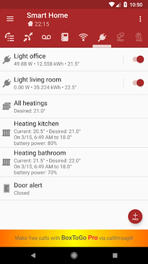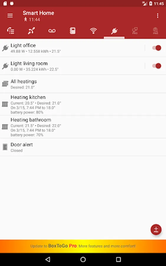 - Smart Home: control switch sockets, heating thermostats, blinds and lights