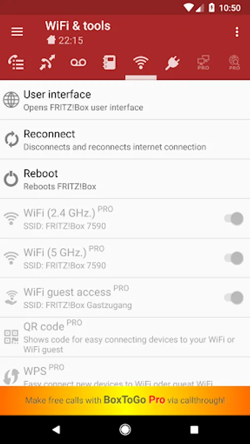 Remote control your FRITZ!Box: view caller list, switch answering machines & diversions, display phone book, reconnect and restart FRITZ!Box, open user interface, switch and control Smart Home.