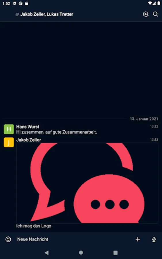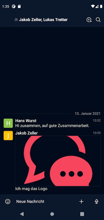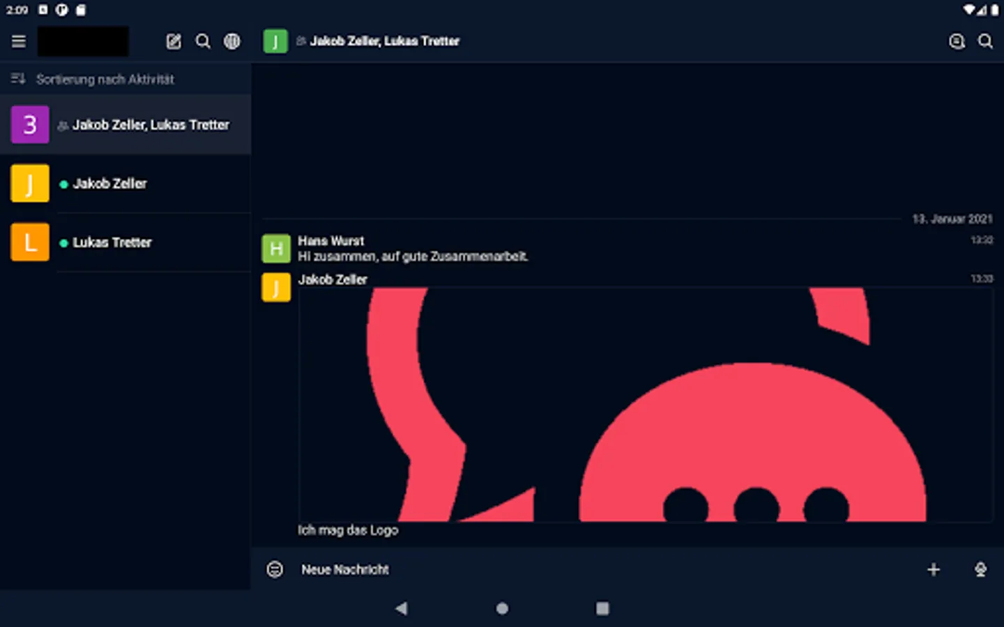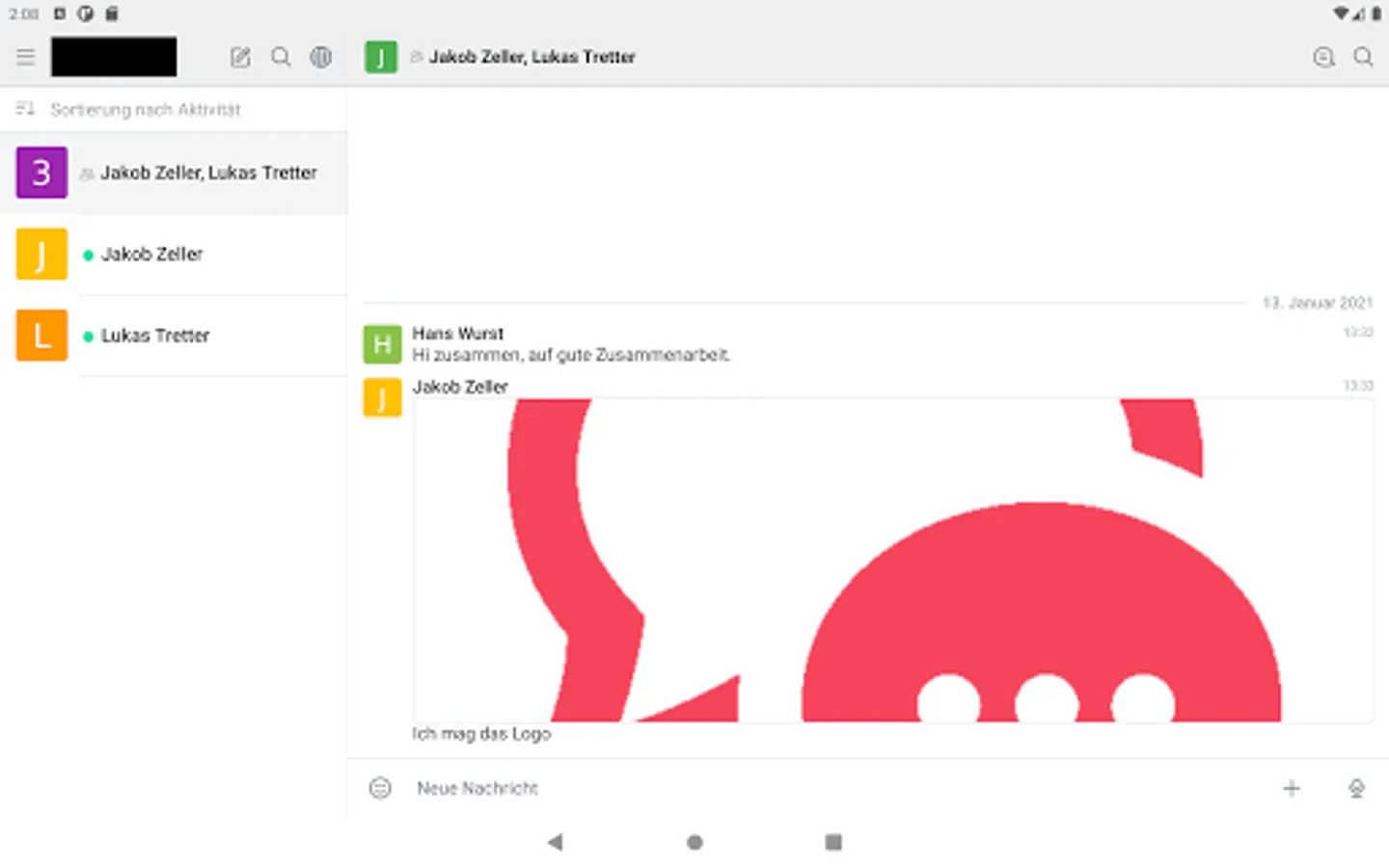 Alpha Chat offers the same functions as the desktop application in use and is based on this.