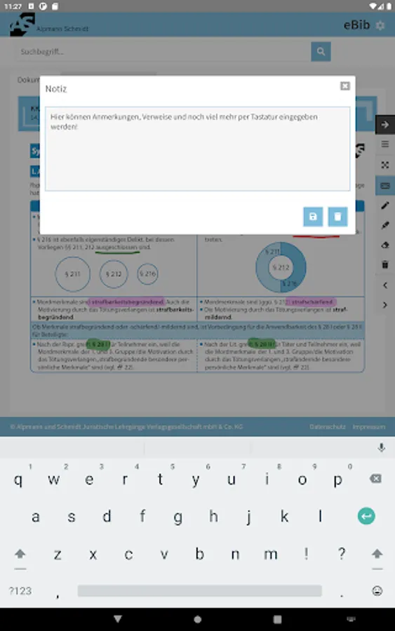 The app is more than just an eReader: In order to optimally support your learning success on the way to the intermediate exam, the 1st exam or the 2nd state exam, you can use all scripts, index cards, magazines and course documents with highlights, comments, references and much more. You can edit the digital works exactly as you are used to from the printed versions! The AS e-library supports both online and offline operation.