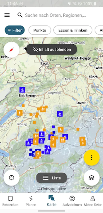 The hiking suggestions and the hikes you have created yourself, as well as the additional elements, can be quickly and easily downloaded to your smartphone together with the map. Together with the GPS position display, you are well equipped for hikes without network reception (offline mode).