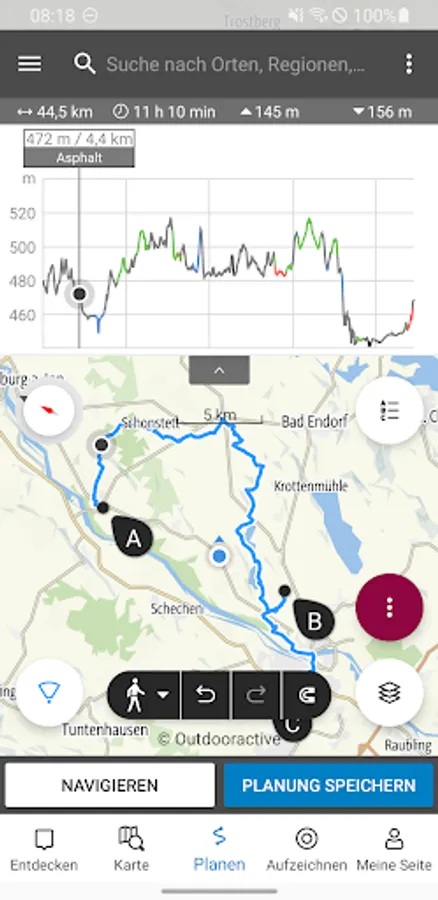 You can easily create and record your own tours. GPX data can also be read in or downloaded.