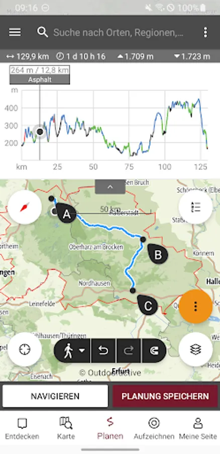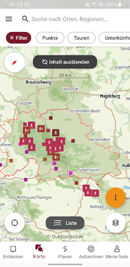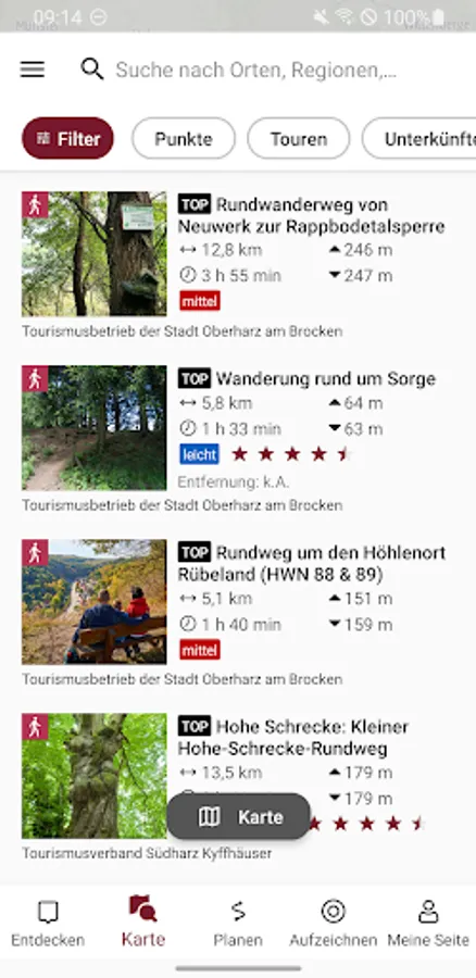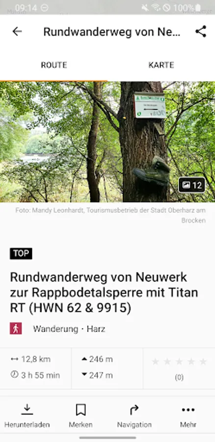 The app contains the entire Harzer-Hexen-Stieg, all stamping points of the Harzer hiking pin, the entire mountain bike route network of the Volksbank-Arena Harz and much more.