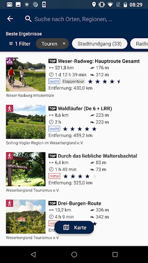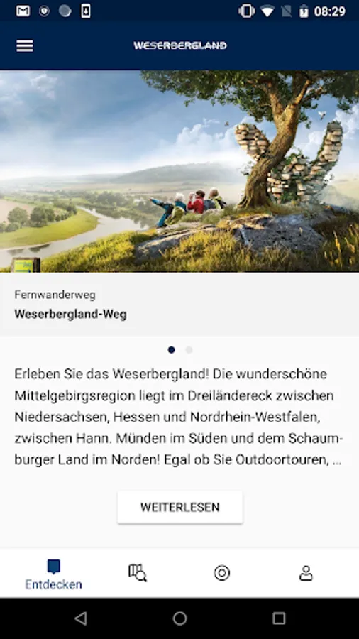 - Accommodation tips: Numerous hosts from the Weserbergland are presented in the app, a booking can be made directly to the host.