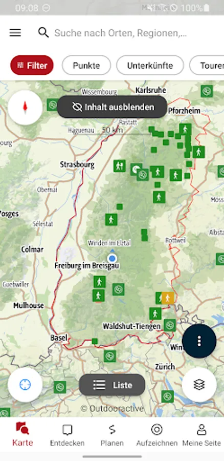 So that you can get a quick overview, the app shows you the tour offers in the vicinity when the GPS is switched on