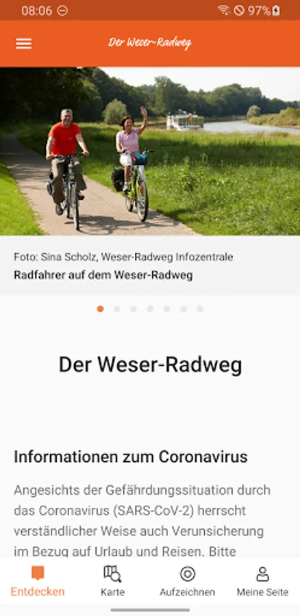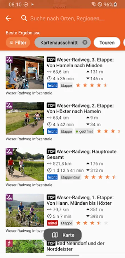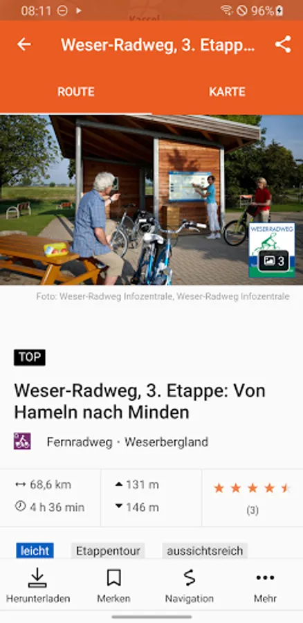 This app is the perfect route planner and tour companion for your bike tour on the Weser cycle path. It contains all information from the Weser-Radweg service booklet on tours and POIs on the Weser-Radweg. With the option of offline storage, this data can also be used on the go after downloading without cell phone reception. Let yourself be guided interactively and with multimedia on the long-distance cycle path on the Weser, cycle from the Weser Uplands to the North Sea. Different natural spaces await you on your way from the low mountain range (Weserbergland) through the North German lowlands (Mittelweser) to the marshes on the Lower Weser and the North Sea in Cuxland.