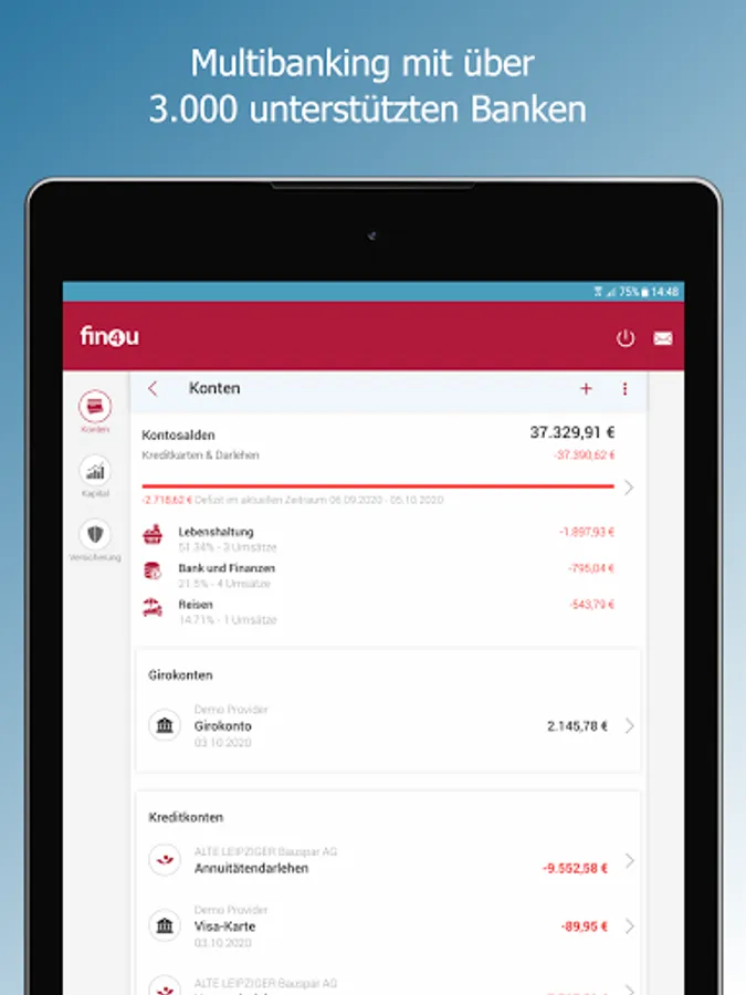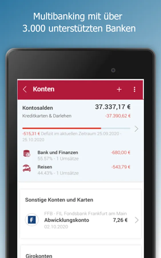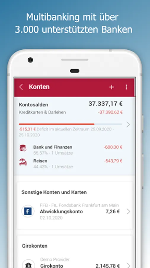 • Over 3,000 connected banks / building societies to choose from (e.g. Commerzbank, Deutsche Bank, LBS Bayern, Postbank, Schwäbisch Hall, Sparkasse, Volksband, Wüstenrot, etc.)