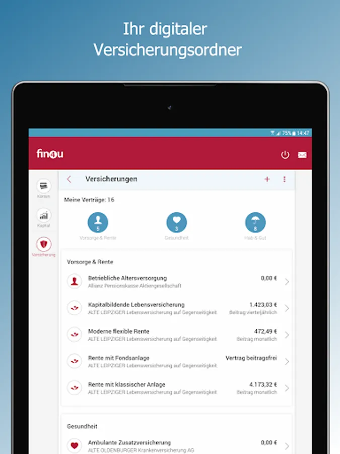 With fin4u, your digital finance and insurance manager, you can easily handle your financial matters and have your contracts at hand at all times!