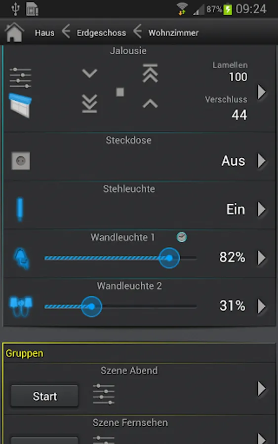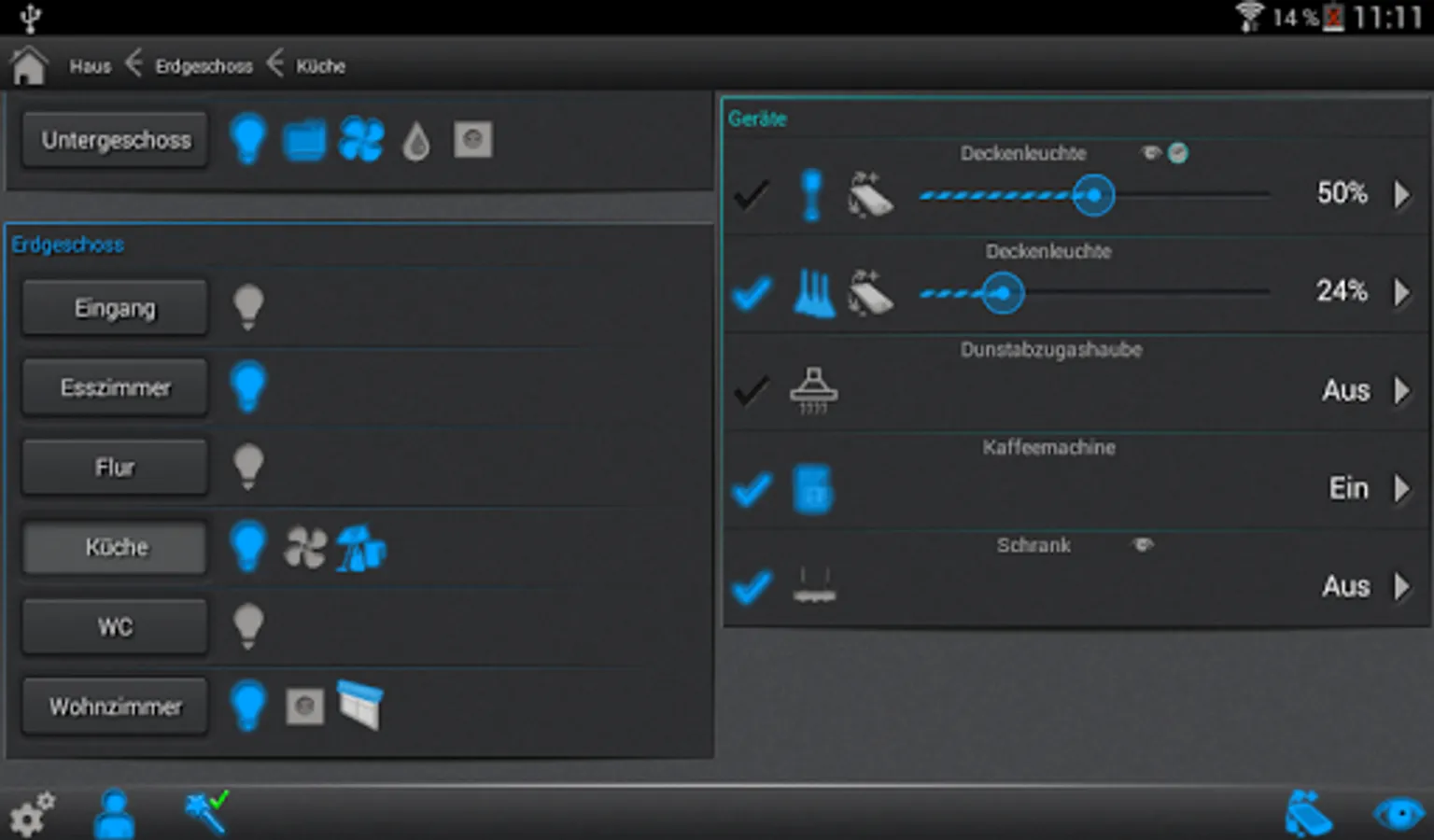The AQ Station-App in combination with the AQStation devices make home controls with Android smartphones/tablets, including visualisations possible.