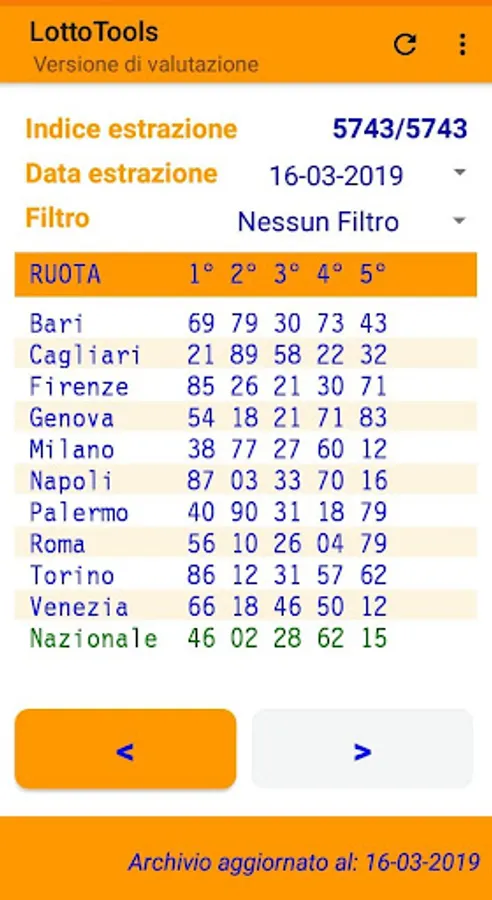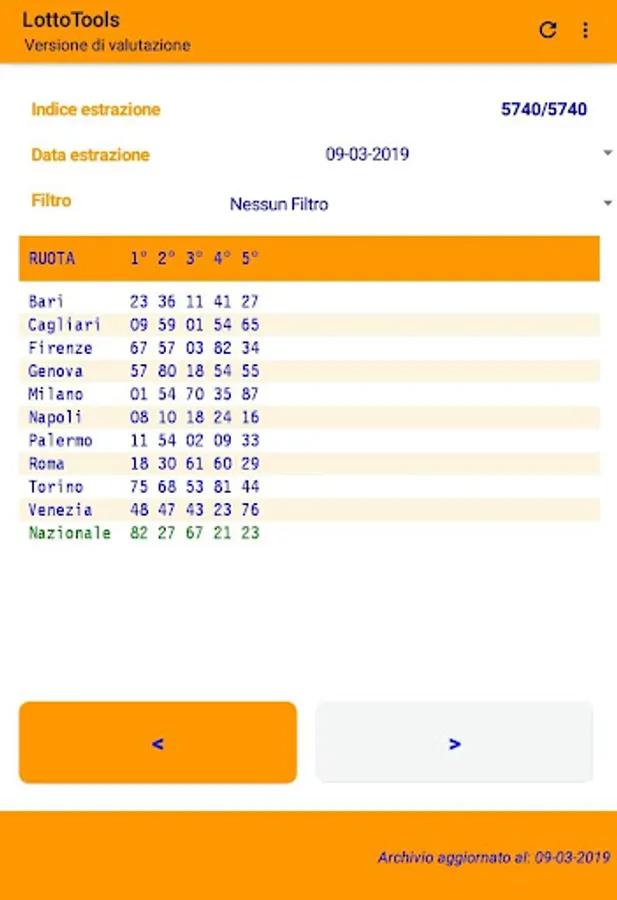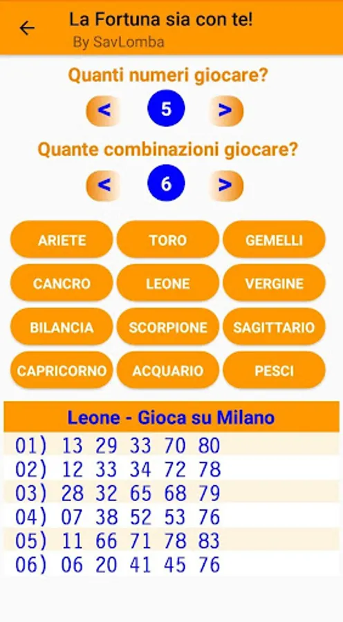 It chooses for you, based on a special algorithm based on your zodiac sign, the quantity of numbers and the wheel where to play them. The numbers generated vary with each processing.
