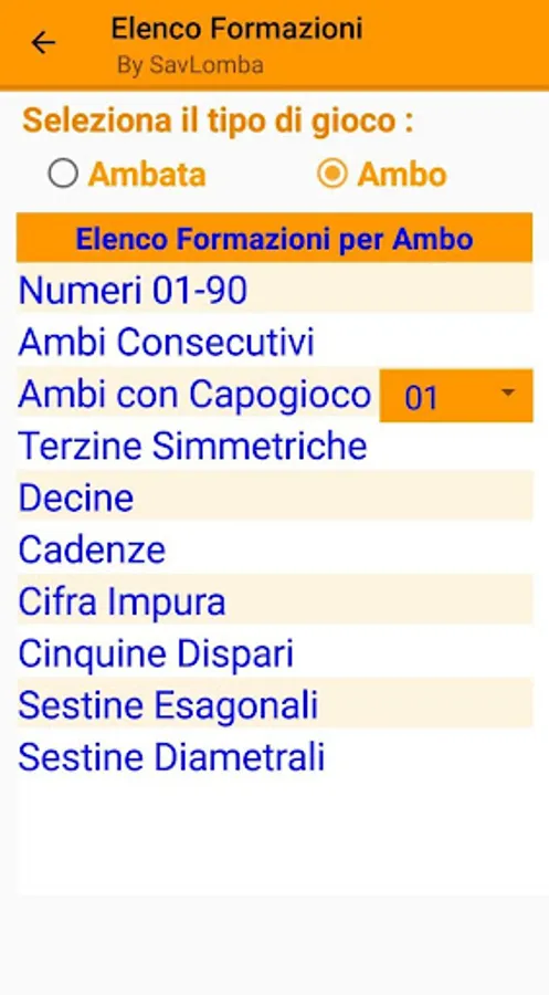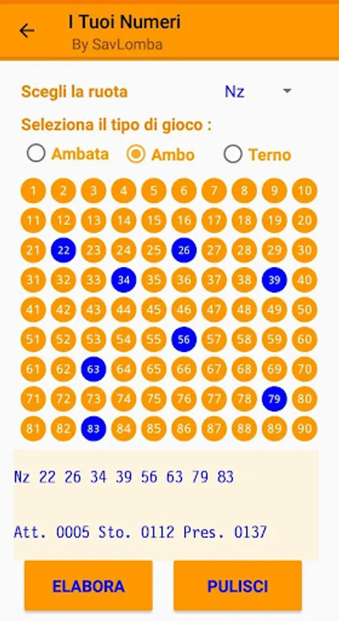 You can select your numbers, the wheel and the type of game, e.g. "Ambata", "Ambo", "Terno".