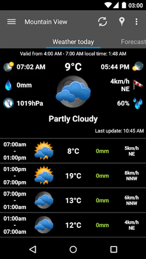- Detailed hourly (for most regions in europe) or 3 hour (rest of the world) forecast for the next 48 hours