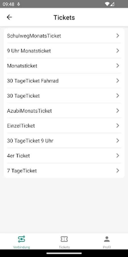 - Single ticket, 4er ticket, 24 hour ticket, 9 a.m. day ticket, 7 day ticket, 30 day ticket, monthly ticket